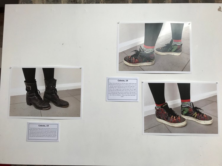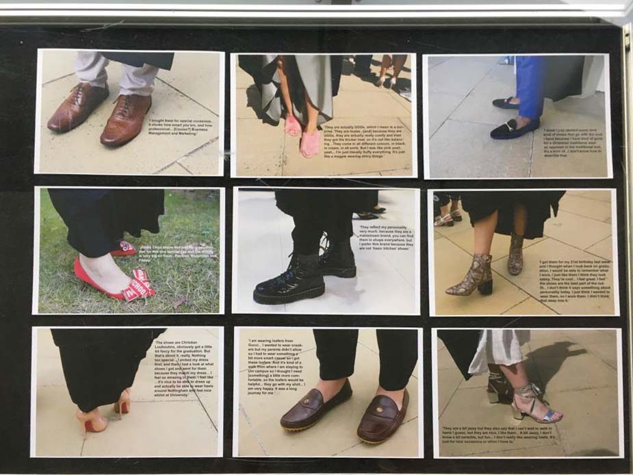 The Shoe and Tell project created by Dr Naomi Braithwaite in 2017, uses methods grounded in visual ethnography to document experiences of identity for individuals as they transition through transformatory life course stages including being a teenager, becoming a university student and a graduate.