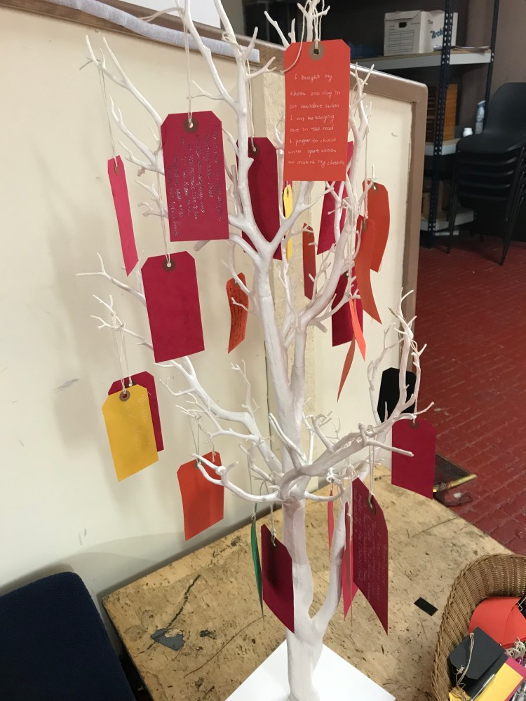 Visitors were invited to write their own personal teenage shoe story and contribute to the Shoe and Tell Memory Tree located within the exhibition.
